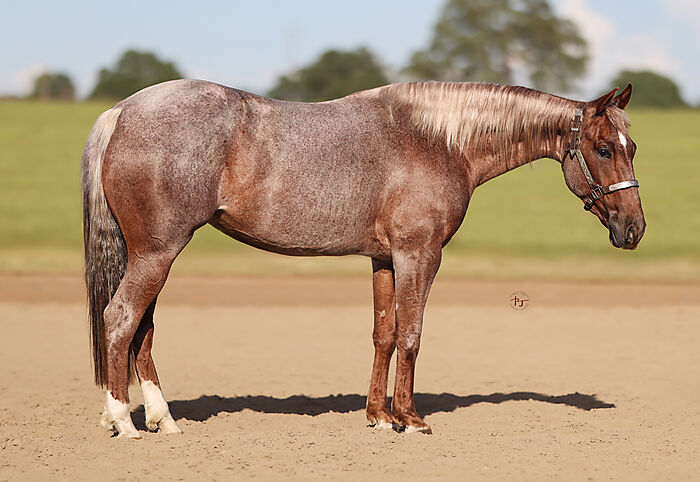 Meet ๐ฅ๐ฒ๐ฏ๐ฒ๐น๐ ๐ฆ๐๐ฎ๐ฟ๐น๐ฒ๐, a 2022 red roan filly by the exceptional Metallic Rebel (LTE $438k) and out of Boot Scooting (LTE $25,669). This mare is bred to perform and is on track for the 2025 Futurities. With names like High Brow CD and Scooters Stylish Oak in her lineage, this filly has success written all over her. Strong, balanced, and sharp-minded, Star has a beautiful and effective way of working a cow. This mare is already showing the ability and drive to shine in the pen. Star is as eye-catching as she is talented, with the breeding and athleticism to excel at any level.