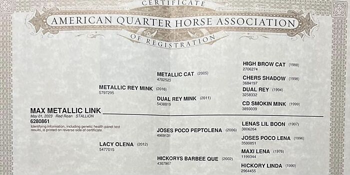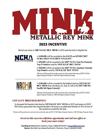 Max is sired by Metallic Rey Mink and is loaded with incentives!