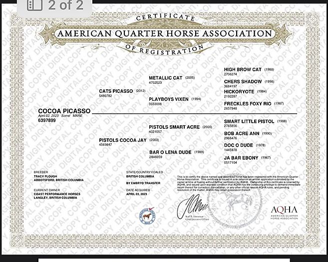 Cats Picasso ($172,000 LTE NRCHA ) x Pistols Cocoa Jay ($14,052 NCHA earnings)