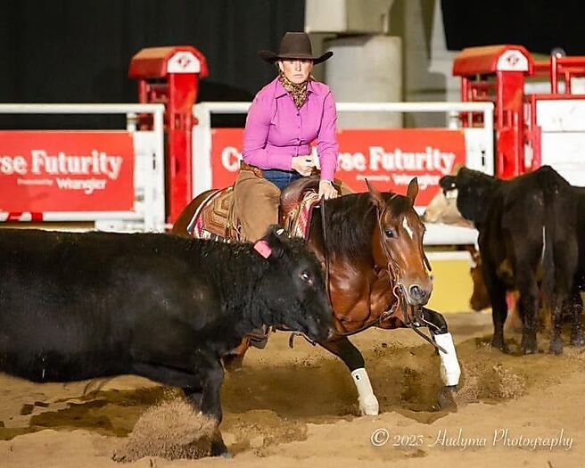 Porcha is a stunning, solid bay 6-year-old mare with a proven record and a bright future. Originally started by Randy Holman, she has been consistently trained and shown by Josh Sleeman. As a 3-year-old, Porcha was a finalist in both the NCHA Amateur and Intermediate Amateur divisions.