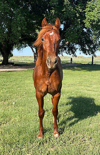 Beautiful sorrel rabicano yearling filly.