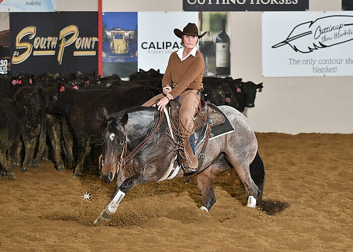 Glittery is a 7 year old bay roan mare out of Little Dirty Dancer. PE: $502,271 which include Little Dirty Deeds, Little Dirty Martini, Little Dirty Rebel, Hydrive Cougar, and Little Dirty Harry. She has earned $17,491 from limited showing and remains novice eligible.
