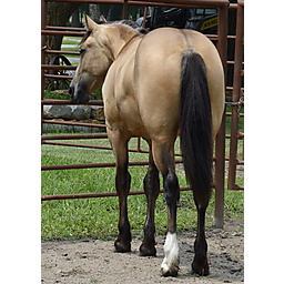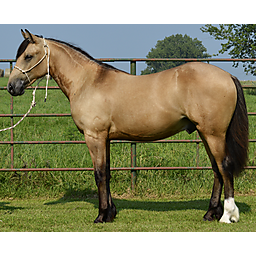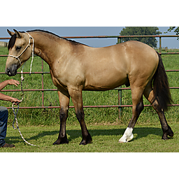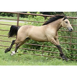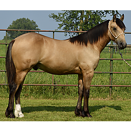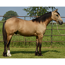 Buck by our registered Gypsy Vanner Stallion, Boomer (Stallions page). Bucks Dam (Mares page) is an own daughter of AQHA point earner in Heading, Heeling, Tie Down roping and Halter - Sizzle Eyed. (Two Eyed Red Buck x Rhinestone Jack). Big stout great colored colt. Super gentle and easy to get along with. Fluid mover. He will sure ride around. He is sure an athlete. He will get you there and do the job when you get there. For you Gunsmoke fans, one of Matt Dillions Buckskin horses was a draft cross, with a thin white strip, a left hind sock, and his name was Buck.PorterQuarterHorses com