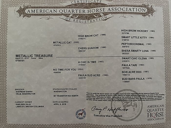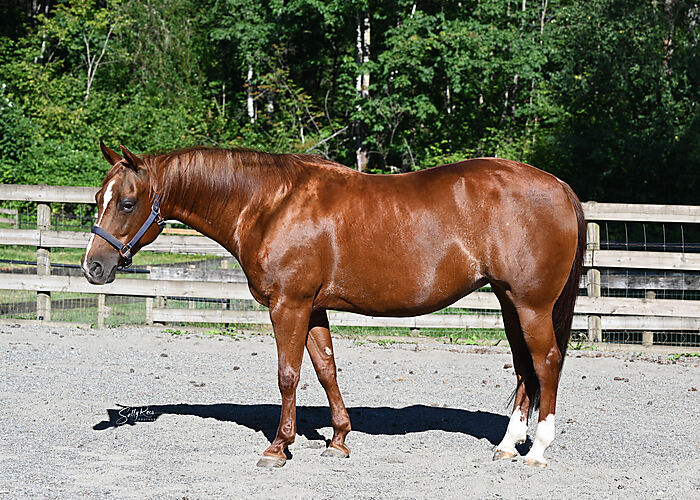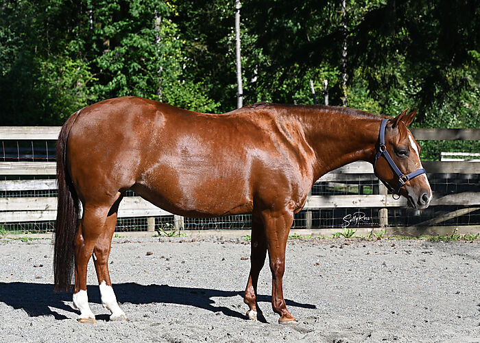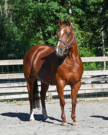- We have owned this mare since she was a long yearling. She was injured early in her 4yr old year. We tried to bring her back without success and decided to breed her. Her foal is great temperament, correct, and will be good size.