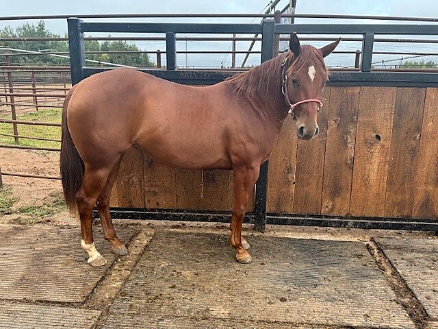 2yo filly by PG Heavily Armed, started (she’s been with a trainer for 5 months) and ready to go any direction. Well built, nice mover, sound and sane. 6 panel Negative. Will remain with trainer until sold.