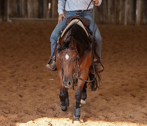 This mare is out of AQHA and NRCHA World Champion Cow Horse Mr Playinstylish and her dam has a LTE of $22,764 and a PE of $31,955. Her sire has an LTE of $145,551 and his foals have earned $1.3 million across multiple events, including Reined Cow Horse, Cutting, Ranch and Roping. He is ranked among the leading reined cow horse sires in 4 of the past 6 years. She is half sister to Satin Lil Kat (2011 S: Hesa Peculiar Cat X Ripped In Satin) who has earned a total of $31,955. This well bred mare has been under saddle for a year now and is a sure enough cow horse prospect for any Non-Pro or Am. rider.
