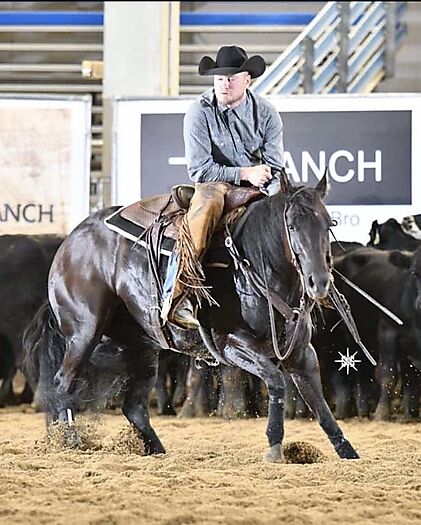 Salley is a 6-year-old, true black Woody Be Tuff mare. With limited showing in 2025, she is fully novice eligible and would be a great World hauler for the upcoming year. She is sound and ready to go with no vices. Competitive at the Open level, Salley is also very non-pro and amateur friendly. Salley may also appeal to those wanting to start in a breeding program, having no Dual Rey or High Brow Cat, she is a great outcross moving forward. For more information, please contact Tim Johnson.