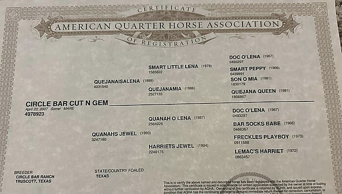 Dam is daughter of Quejanaisalena with earnings of $56k. She has been a show horse her entire life. These are her first foals.