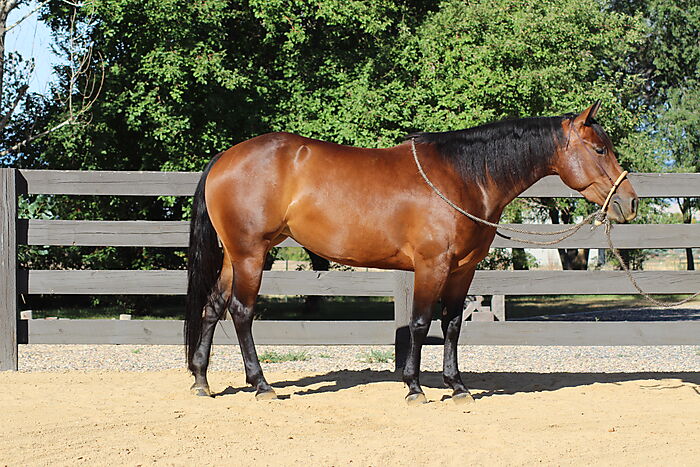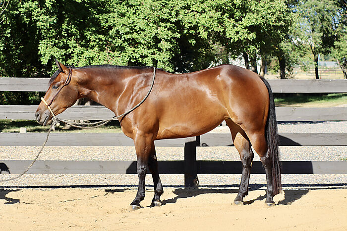 Started correctly with a stellar reining foundation, this mare could go any direction. On track for the reining pen but could easily transition to the cowhorse, ranch versatility or the roping pen.