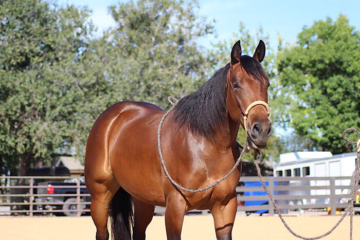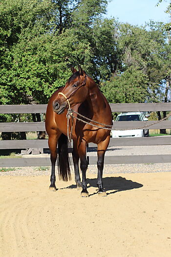 Broke and solid, great stop and turnaround. Easy to have in the barn, no vices. Will be easy to finish and will make a great show horse.