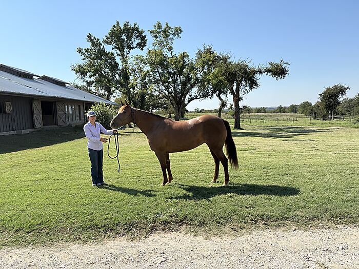 6 yr old mare. She is very athletic and strong and will make a great hauling horse. She has been worked by all levels of riders. She is eligible for the $5000 novice. She’s marked 74’s in the $25000 novice. She has not been shown much this year due to owner taking year off. She is in training with Dell Bell.