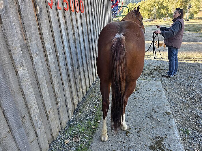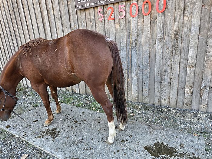 Lady may in your pocket, as ll the time, cowy quick. My 3 year old just sits on her when we are out fencing and she will walk the fence line with her just sitting on her baths loads ties trims. Ready to start your way. She about 14.1 now she'll probably be 14.3. Good feet and bone! Will be making a run from n idaho thru mt, south Dakota, wy Kansas Nebraska Oklahoma TX New Mexico Arizona Nevada Utah Oregon. So delivery is available!