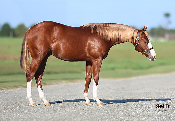 Sired by DUAL REYISH – earner of $452,687, NCHA Open Futurity Champion, and Breeders Invitational Open Derby Champion – this flashy colt is bred to be a standout in the show pen and a future sire prospect.