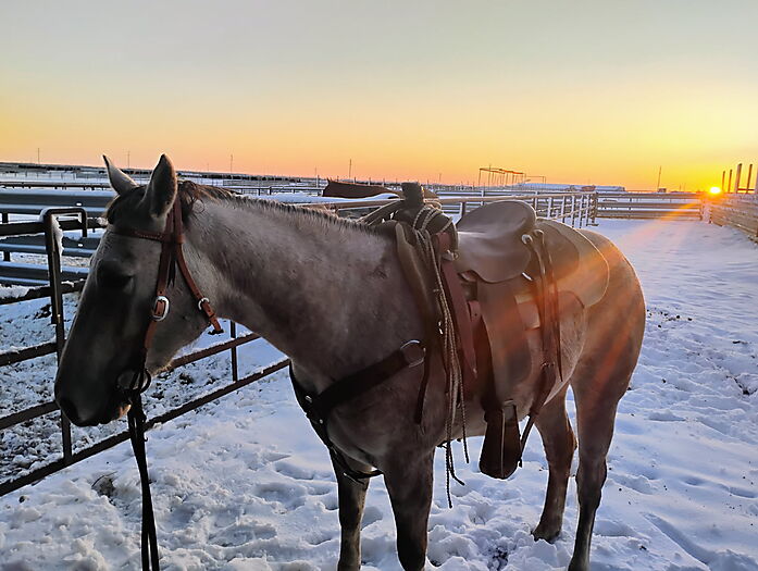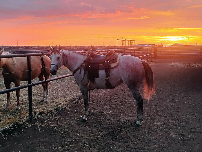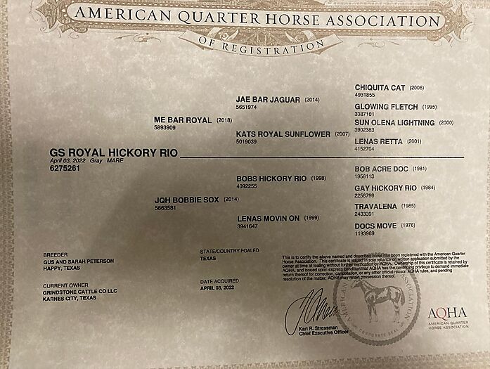 We bred and raised "Juanita". She has been in consistent training with us since she turned 2. Juanita has been working on a backgrounding yard since March 2025. She has doctored many yearling on wheat by herself. This tough, gritty mare will go all day. This is Gus's favorite to ride in mud or snow. She keeps her feet under her and hasn't missed a step. Juanita has a lot of talent and would easily make a rope horse. Stands 14.2 hands tall. Not a beginner horse. 6 panel tested n/gbed other 5 n/n. Priced at $15,000