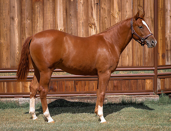 This 2024 sorrel colt carries a powerhouse pedigree from both sides. He’s bred to be versatile, smart, and stylish — the kind that turns heads and gets the job done, whether in the show pen or on the ranch. Balanced, confident, and ready to develop into something special.