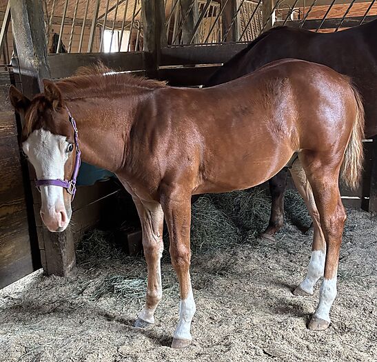 Pirate is a special colt. Well bred, correct and colorful. His dam is a big, pretty dark chestnut mare out of a daughter of Reminic. His sire , No Smoking Required has lifetime earnings over $500k. His oldest foals are 3 year olds this year.