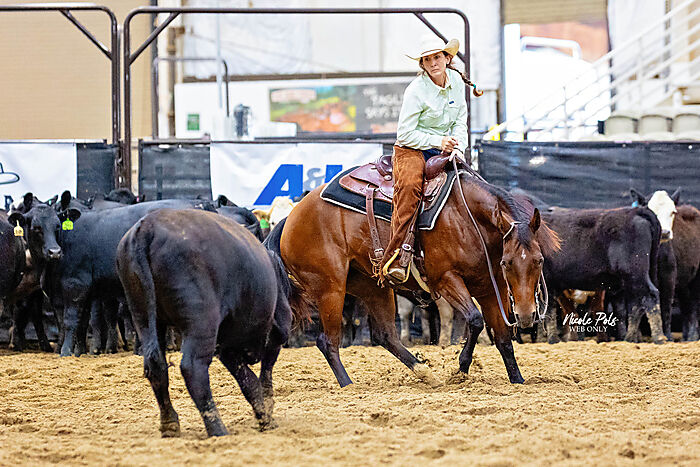 Nell is a strong mare with a big stop. She is very cowy and easy to work. She has earned in the open and amateur with very limited showing.