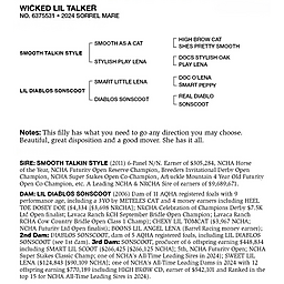 2024 filly by Smooth Talkin Style (LTE 305k) dual registered both AQHA/APHA, an NCHA Horse of the Year and Futurity Reserve Champion and a 2024 Top 10 Cutting Horse sire with PE of over $9 million