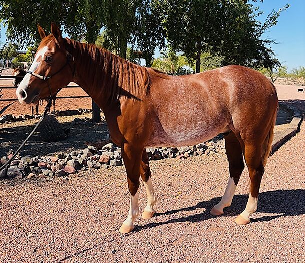 Super cute, very solid 5 yr old Reyzin the Cash gelding LTE $46,000.00. Perfectly suited for NP/AM. Easy to get ready and is very consistent. He is an easy keeper, barefoot and a good disposition around people and plays well with other horses. No vices. Double registered, Chrome Cash and fully Novice eligible. He has a really nice moving style and has won money with trainer and nonpro. In Arizona in training with Todd Adolf 303-304-4585.