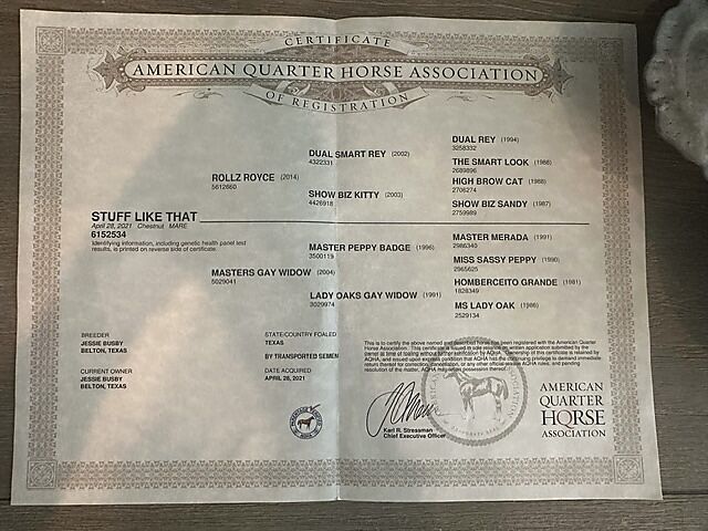 RR is a stunning, sweet and solid cutting horse. 2 more years of aged event eligibility. Sound and up to date on all maintenance. NCHA earnings with very limited showing due to my schedule. Trained by Scott Ferguson. Show her now and breed her later!