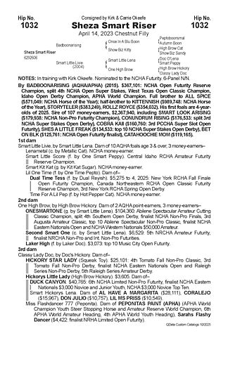 Athletic, willing, and built with a big stop, this filly is an outstanding open-caliber futurity prospect. She’s correct and talented.