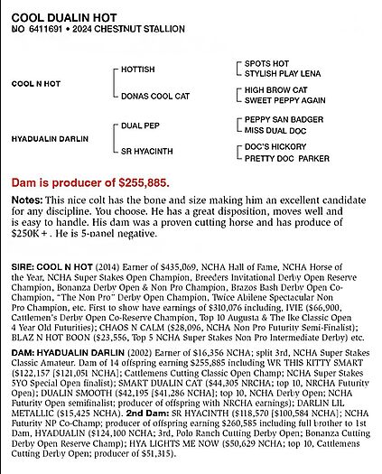 Dam: An NCHA money earning OWN DAUGHTER of the legendary Dual Pep, with PE of over $250k!
