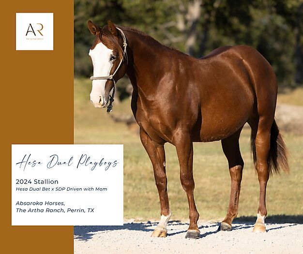 HESA DUAL PLAYBOYS (“Baldur”), a 2024 Stallion by HESA DUAL BET (LTE $213k, NRCHA Western Open Derby Champion, NRCHA Open Hackamore Reserve World Champion) and SDP Driven with Mom ($1.8kLTE, $12.2K PE). With a stellar pedigree, very strong & with an incredibly sweet disposition - calm and relaxed at all time - he makes a great cowhorse and roping prospect.
