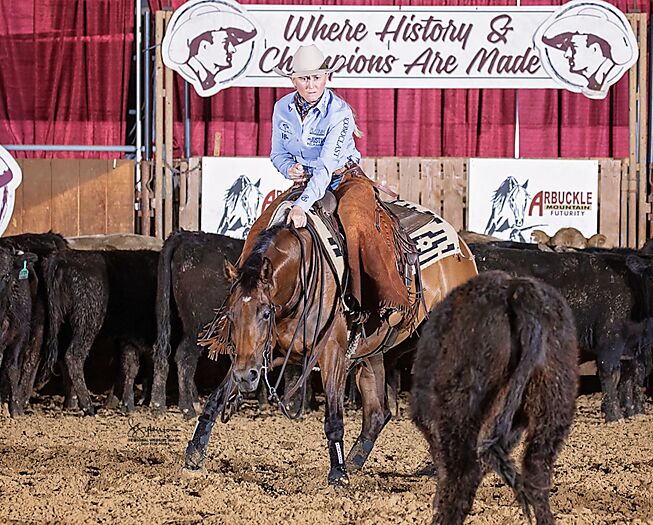 A good Cat mare always stands out, and Moma Mia is no exception. This 2022 bay by High Brow Cat out of the exceptional SDP Moms TR combines pedigree with natural cow sense. She’s pretty, confident on a cow, and ready to continue on with her show career.