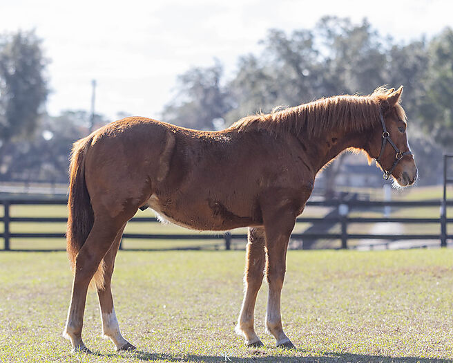 This is a super nice colt! He is very easy to have in the barn. Leads, ties, stands for grooming and bathing. Stands for the farrier. He has shown a real willingness to learn and is sure to be athletic! His dam has NCHA lifetime earnings of $74k
