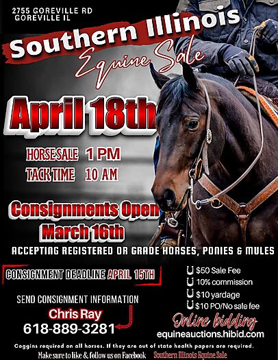 She is consigned April 18th to the Southern Illinois Equine Horse Sale in Goreville Illinois. Online bidding is available and so is transport. Please contact me with any questions before bidding.