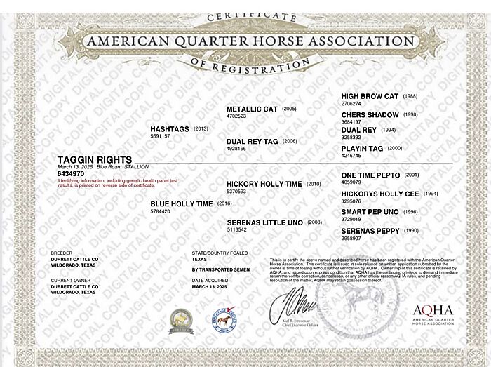 Enrolled in: Riata Stallion Incentive & NRCHA Cow Horse Incentive