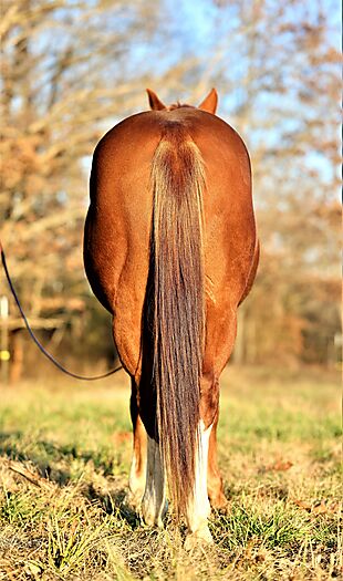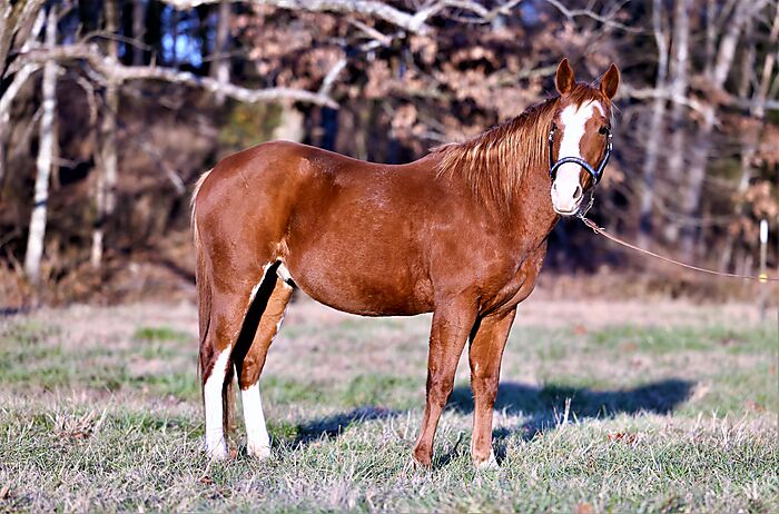 Looking for that young, versatile horse that can do a bit of everything and go any direction you want? Well, look no further! Meet Chief! Chief is a 4 year old cow bred Quarter Horse gelding that is registered with the American Cow Horse Association. He stands at 14.2 hands and has beautiful conformation with a full, thick mane and tail. Chief is a gorgeous bright sorrel with a lot of chrome and flash! He has some of the most unique markings that really catches your eye and makes him standout in a crowd. From his stockings and sock to his money symbol and flame shaped blaze, he's got it all. He has been started with a gentle hand and he responds willingly with a bright but kind eye. Chief has explosive athleticism complimented by floating smooth gaits and buttery transitions. He responds with light pressure and has a willingness to please. Chief has a solid mind and the athleticism that would allow you to excel in any discipline but his ability to turn extremely hard would allow him to shine in competitive western disciplines. He has been exposed to livestock and is developing his cowiness and has recently been introduced to having a rope thrown from him. Chief comes from a long line of extremely hardy and prolific cattle horses, he was foaled on the Colt 45 ranch in Payette Idaho. He hales from some of the most prolific cattle horses to ever live, his pedigree includes Lonesome Tiger, Jody Fairfax, and Frostys Tops. Chief has sound correct feet and has never been required to be shod. Chief has no kick or bite, he is safe around children but will require an experienced rider with a light hand because he is extremely sensitive. He is sure footed and well balanced which allows him to eat up the trails and hills with ease. Regretfully we are in a position to have to let this once in a lifetime horse go. Chief loads well, stand for the farrier, ties, bathes, clips, stands, is quiet while mounted, and is well adjusted to other horses. He collects when backing, side passes, yields his front and rear, he is good on both leads, does well with dogs and machinery, and is comfortable crossing water. Chief is easy to catch, stands to be saddled and bridled, he works on a loose rein, and lunges with ease. Vet and coggins test scheduled for Tuesday Dec. 13, 2022 info will be added as soon as received.