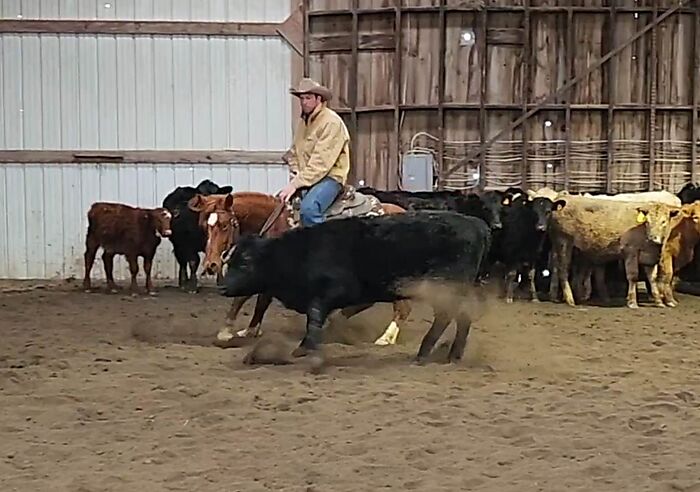 2 yr old gelding with a good start and on the right track to go either cutting or RCH. Really cowy with a great handle.