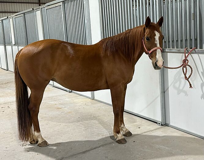 She was trained and shown by 3 time World Champion Chubby Turner. A gorgeous mare, easy to be around, hauls great and be shown by any level rider. Out of the great stud Boon Too Suen, she's also a great brood mare prospect! She enjoys the trails as well.