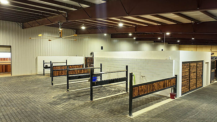 Facilities: Beginning in 2021, three large facilities were added to the property, adding to the pre- existing 22 – 12’ x 12’ stalls, 60’ round pen and eurosizer, in order to create this one-of-a- kind equestrian center. The new facilities include a 14-stall rehab and conditioning barn with a veterinary office and a full surgical suite. This barn houses all of the therapy equipment including an AquaPacer, hot and cold saltwater spa, and theraplate. All of the stalls in the new facilities are 14’ x 14’ with StableComfort mattresses to offer ultimate care and comfort for the horses boarded within. In addition, there is a 46-stall boarding barn with an attached 135’ x 225’ covered arena, a 7-horse Priefert panel walker and an 80-foot round pen. Both of the new stable barns incorporate 1 ¾” rubber pavers in the aisles offering a quiet, peaceful barn. Finally, there is a 15-stall breeding barn with three stallion stalls which houses all facilities a breeder needs on-site, including an AI lab. Overall, 97 horses can be stabled indoors within the over 100,000 sq/ft of barn space.