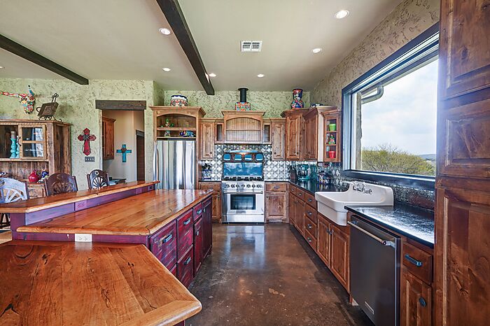 Nestled On Approximately 75.68 Rolling Acres, Is A Premier Equestrian And Country Lifestyle Retreat. Enter Through The Electric Gate Up The Driveway To This Beautifully Crafted Rock-And-Stone Custom Home. Walk In The Luxurious Entryway That Opens Up Seamlessly Into A Bright, Open Floorplan With A Gas-Starting Wood-Burning Fireplace, Vaulted Ceilings and The Expansive Windows That Frame Breathtaking Views Of The Palo Pinto Mountains. This Home Has Four Spacious Bedrooms, Four Full Bathrooms, As Well As Bonus Room. The Gourmet Kitchen Boasts A Farmhouse Sink, Gas Stove, Island With Bar Seating, And Custom Finishes. The Home Is Country Friendly With Concrete Flooring Throughout.