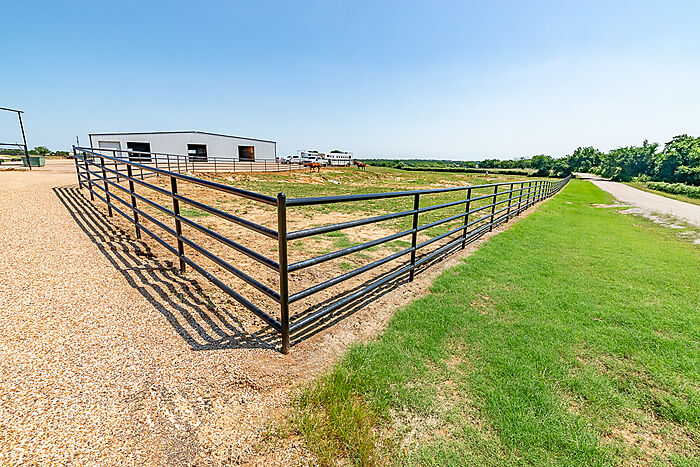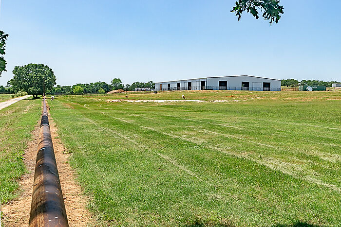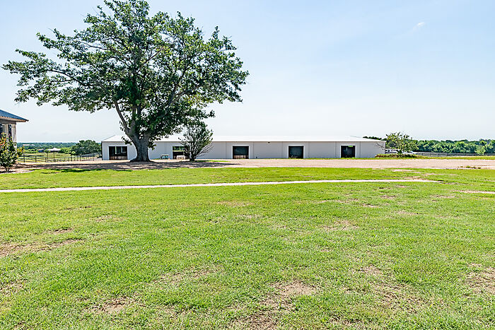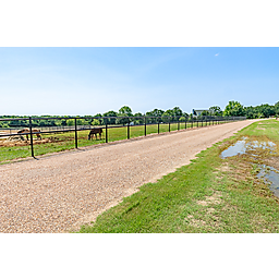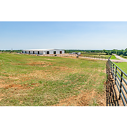 IMPROVEMENTS: The horse barn/facility shell is 135x250 skirted with a 2' concrete curb and sixteen 16 foot pillars. Approximately 125x130 interior asphalt as the base of the barn. 16 openings of 14x14 for cool summer breezes. The arena is approximately 125x120. The round pen is 32 feet in diameter with 3 separate entries – (1) from the barn, (2) to ride directly into the arena, & (3) directly into the tack room for easy storage of your saddles and tack. Twenty 12x13 stalls with state of the art one piece rubber mats for maximum comfort and cost efficiency due to less shavings needed. Each individual stall has an automatic frost-free water system. A center cut gate between each large stall that transforms them into 12x26 stalls with ease. Strategically placed automatic timer light system above each stall. The 20x32 tack room has - 3 rotating walls, 2 being for saddles and pads and 1 designated solely to bridles. - Above is a 20x32 decked porch viewing area. - A single bath with a shower for guests who are visiting. A 60' diameter 6 horse Priefert walker. The shavings room is approximately 17x25 with 12' side walls. The wash rack is approximately 15x20 with 2 shower heads including hot water and a breeding stock. The apartment is 60% finished - a lower level consisting of a master bed and bath and a common living room and kitchen for everyone to enjoy the evenings. - the upper level provides 3 bedrooms and 1 bath with a balcony overlooking the barn interior. Approximately 2700' of 2 7'8, 5 rail pipe fence. Frost free water bibs. Loafing sheds, one 24x12. An old 40x20 hay barn that holds a truck load of hay.