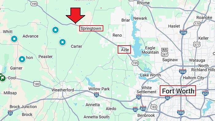 LOCATION: 4698 Holbrook Road, Springtown, Texas. From Springtown – 4.3 miles, Weatherford – 26 miles, & Fort Worth – 30.6 miles.