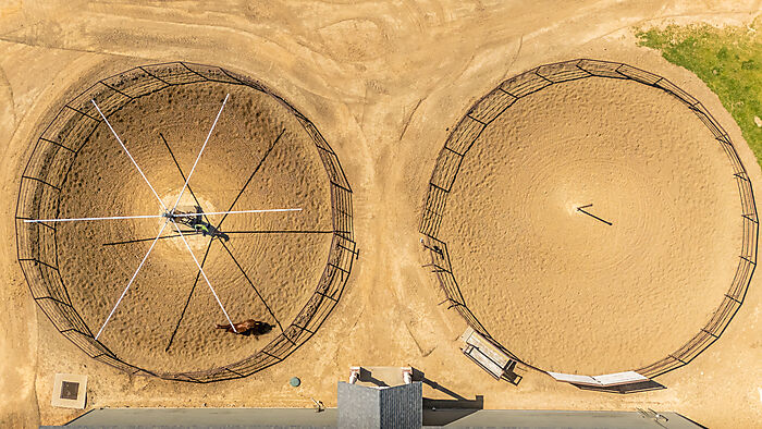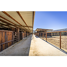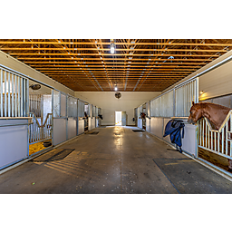 The ranch’s horse facilities cater to every equestrians need, starting with the main barn, which boasts 8 stalls (expandable to 10), a wash rack, tack room, hay/feed room, and a Priefert walker. The barn features drains in the center aisle, lights and fans on timers, and a half bath with a washer and dryer.