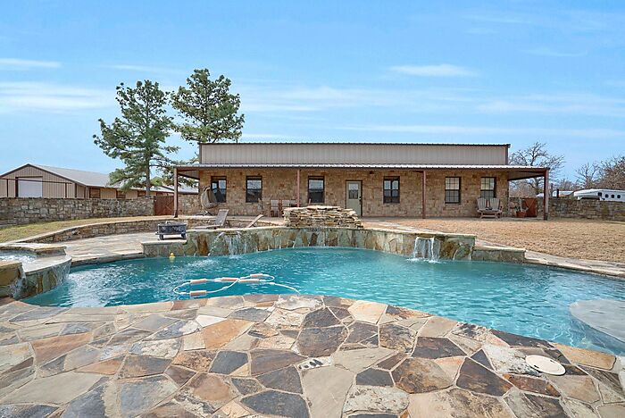 | Stunning Luxury Turnkey Horse Ranch On 157.066 Acres. This Extraordinary Breathtaking Texas Ranch Offers The Ultimate Blend Of Luxury, Comfort, & Functionality. This Estate Offers A Premier Lifestyle For Both Equestrian Enthusiasts & Those Seeking Luxury Living In A Tranquil Setting. Custom Built Home With Beautifully Crafted Living Space With Rock Detail That Blends Comfort & Elegance, Offering Spacious Living Areas & Exquisite Attention To Detail Throughout with 4 Bedrooms & 3 Bathrooms & a Home Office. The Second Residence; Pool House Offers An Additional Residence For Family, Guests Or Staff, Offering Both Comfort & Privacy with an Open Concept Floor Plan for Versatility, With A Luxurious Home Theater Room Complete With Plush Seating For An Immersive Cinematic Experience. A Spacious, Insulated Heated Horse Barn With 12 Stalls, Tack Room, Feed Room, & Wash Rack. Alongside A Horse Walker For Optimal Care & Exercise. Pipe Arena Is Approximately 300 Ft X 170 Ft With Return Alley & Pipe Pens. 3 RV;Horse Trailer Plugs With Water At The Hookup. Lush Coastal Fields Are Fully Fenced & Cross-Fenced, With 9 Stock Tanks & 2 Water Wells To Support The Needs Of Your Livestock. Additional Outbuildings, Including A Large Shop, Provide Ample Space For Equipment, Storage & Workspaces For Farming, Ranching, Or Hobby Purposes Ensuring That Everything You Need Is Easily Accessible & Protected From The Elements. Outdoor Living Space to Entertain Guests With Plenty Of Space Around The Pool, With An Outdoor Kitchen, Stunning Pool With Waterfall Features, Hot Tub, & The Expansive Pool House Is Ideal For Entertaining Guests. Enjoy The Serene Natural Beauty Of Your Surroundings, With Meticulously Manicured Grounds Perfect For Relaxing Or Hosting Large Events. The Ranch Provides An Idyllic Escape With Ample Space For Both Recreational & Professional Pursuits. This Is An Extraordinary Property That Offers The Best In Country Living With Top-Tier Equestrian Facilities & Luxurious Amenities. |