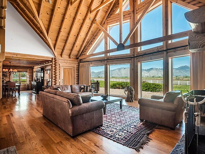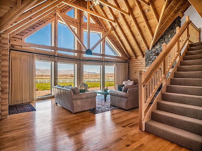 There is a concrete RV pad with water and sewer dump available at the main house. The 6 car plus shop/garage/workshop can house all of your toys and then some. Constructed with a 12ft and a 16ft roll up door, house your RV or horse trailer all year around. The home is wired with a Generac generator. Added to the property is a 3-bedroom, 2-bathroom log sided, personal property, manufactured home with brand new carpet. It does sit on a permanent foundation, it's perfect for guests, in-laws, a caretaker or Airbnb. The brand new, 8 stall, raised aisle MD barn, complete with wash rack, hot and cold water, sink, electricity, Nelson waterers, enclosed tack/feed room and completely matted, is ready for your 4-legged friends. One stall wall can be moved to create a foaling stall. Around the barn is fenced and ready to use! Irrigate your pastures, grow and produce your own feed for a self-sustaining farm. Water storage rights convey. Graze your livestock in the cross fenced 7-acre pasture where you can view them from your front window. This creates a little heaven on earth for livestock fanciers! Kubota Tractor and John Deere mower available outside of escrow as personal property.