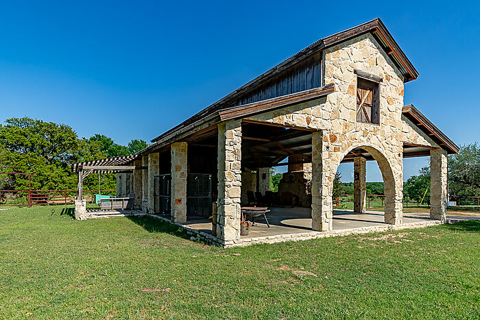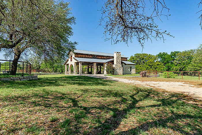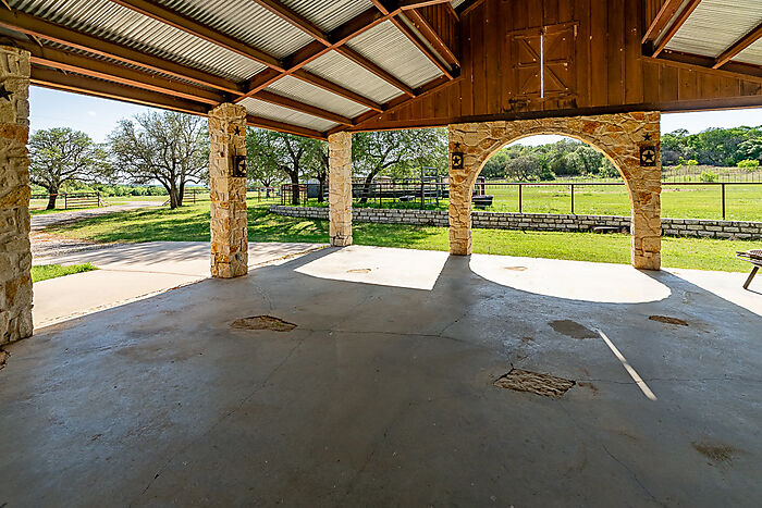 IMPROVEMENTS: A large stone pavilion with stone columns, a huge stone wood burning fireplace, a 1-1 bunkhouse with kitchen and shower, and a two-level vaulted metal roof. Stone retaining walls around the pavilion and pipe and cable fencing. A metal building for feed, supplies, and tools. A pipe and cedar stave entry, and wire fencing with cedar staves along Consolation Drive.