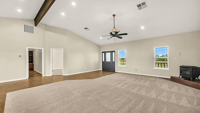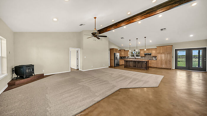 This amazing 4-bedroom, 3-bath home sits on 9+ acres and offers 2,800 square feet of thoughtfully designed living space, ideal for both everyday comfort and entertaining and perfect for someone who loves animals. Built in 2007 and recently updated with fresh paint and can lighting, built-in shelves in all closets, and 2 water heaters—recently replaced. The master bedroom is spacious and includes a large private bath and huge closet. A second living area offers flexibility for a playroom, home office, or additional lounge space. This home is also wheelchair/scooter accessible.