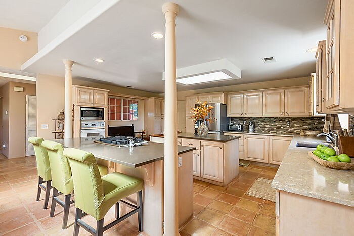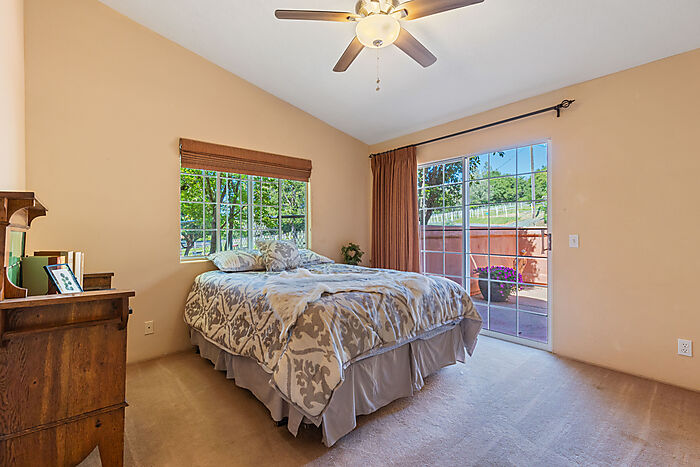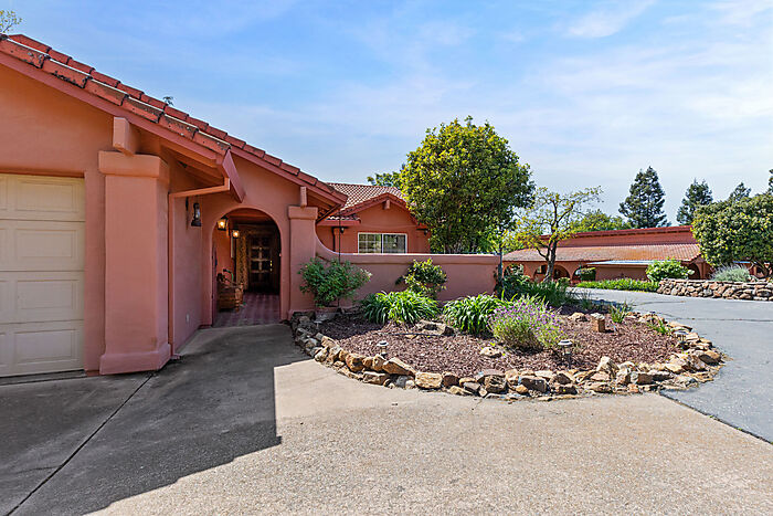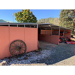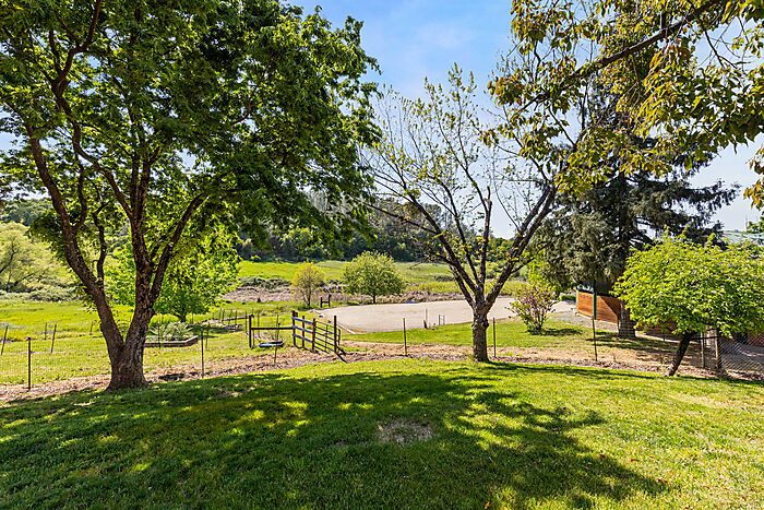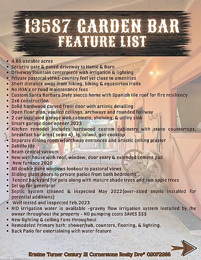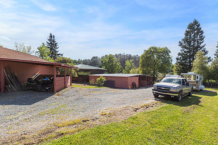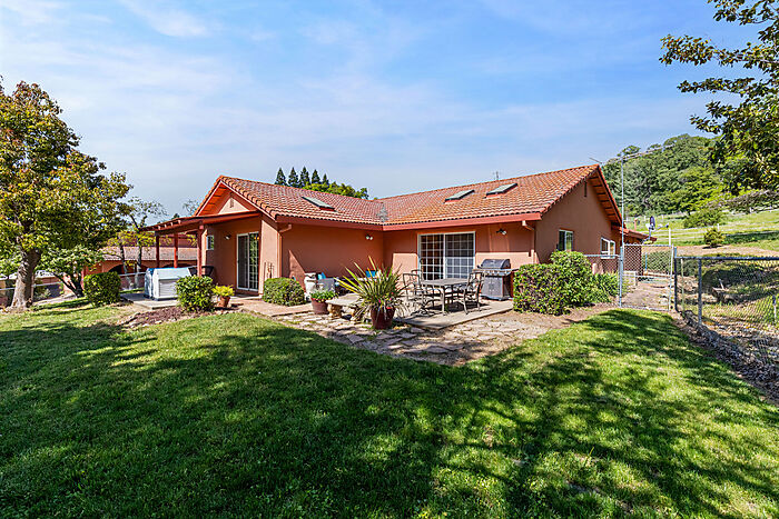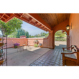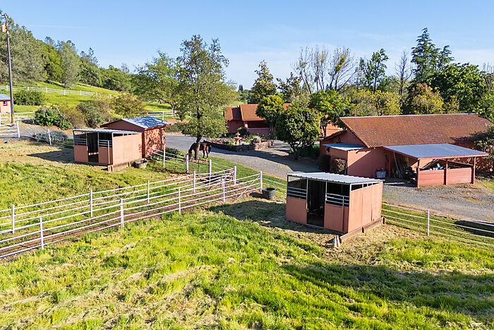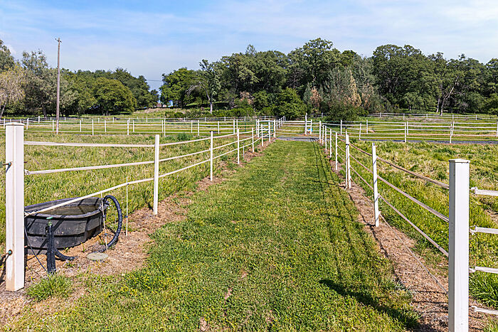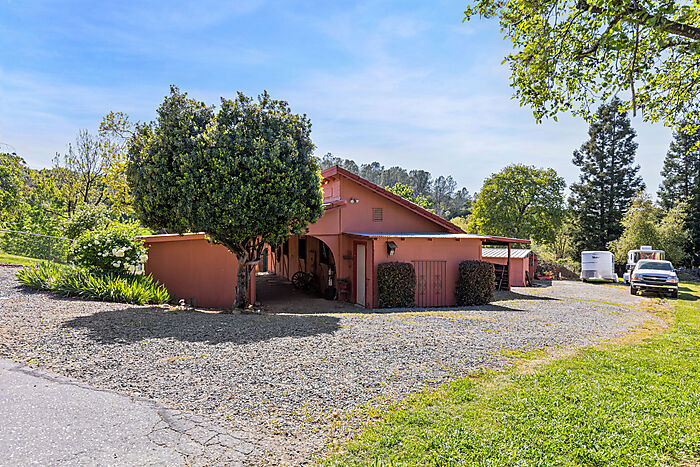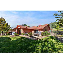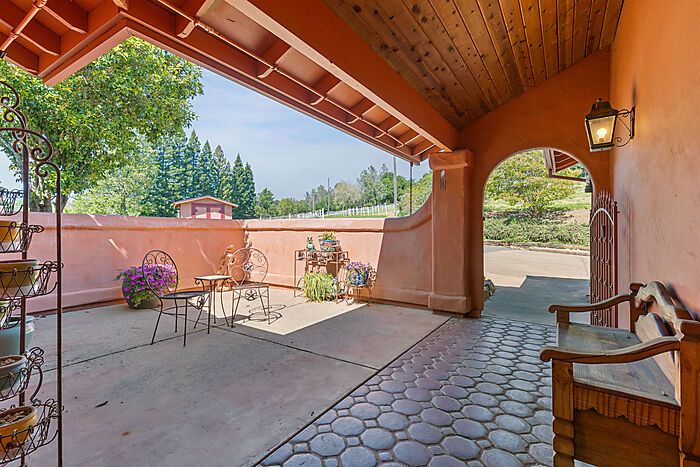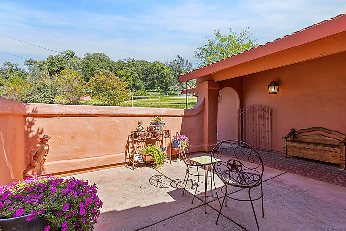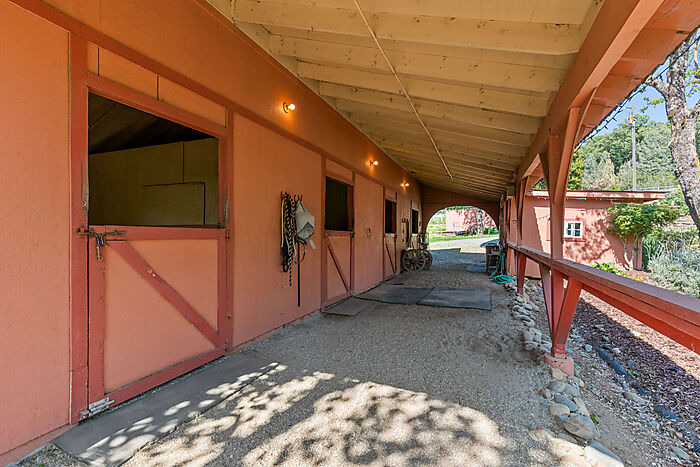 This beautiful turn-key equestrian estate on 4.65 usable acres is fully fenced and cross-fenced with gravity-flow irrigation throughout the property. Which saves you $$ due to no pumping costs! The property has a gated, paved driveway that leads to the custom home and a 4-stall barn with tile roof that matches the house. The charming single level, Santa Barbara style home is designed with an artistic flare, vaulted ceilings, an open concept with two large bedrooms, each with its own patio and 2 full baths. The spacious kitchen has solid wood cabinets, stone countertops and stainless appliances with seating for four at the counter. The pastures could be converted to a vineyard if desired. As for the horse amenities, this property has it all! A 4-stall barn with tile floor tack room, a covered area for boat parking or additional equipment storage, additional 6 stall barn (could be converted to a shop), 5-ton hay barn, covered horse wash rack/shoeing area, and a covered, enclosed, lighted Castlebrook round pen. Outdoor sand arena with sprinklers provides 365 days of riding opportunity! Two grass paddocks with shelters, 3 pastures and a pond, recently resealed driveway and STARLINK availability. Consider all the amenities of this gorgeous property with its proximity to shopping and trail access and you will agree- this is a rare find with great INCOME POTENTIAL!
