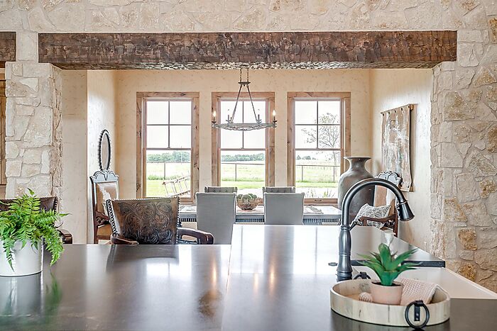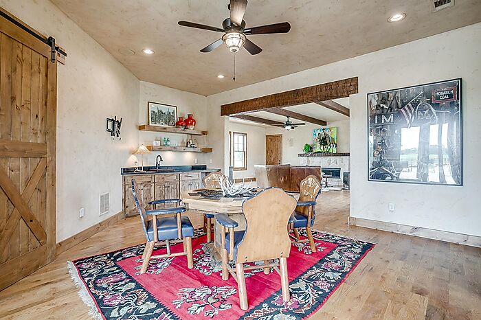 As you pass through the gated entrance and down the chip-seal drive road lined with rolling green pastures, you’re welcomed into the heart of the ranch—where comfort, craftsmanship, and country living come together. The 5,000± square-foot ranch-style is a true masterpiece, with its wooden beams, and open-concept layout that blends rustic charm with timeless elegance. Step inside and take in the impressive stonework and sweeping views of the backyard oasis. With 5 bedrooms, 6.5 bathrooms, and multiple living areas, the home invites you to relax, entertain, and create lasting memories. Out back, the expansive covered patio overlooks a custom pool with rock waterfalls, while the built-in wood-burning fire pit is perfect for winding down under the Texas stars, with nothing but open skies and grazing horses in sight.