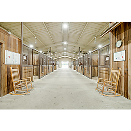 There are two additional barns offering more stalls and ample equipment storage. Water and electric are thoughtfully run to the barns, and 8 cross-fenced turnouts provide plenty of turnout options for rotation, rehab, or just giving horses space to be horses.