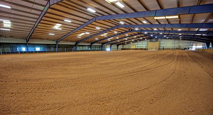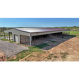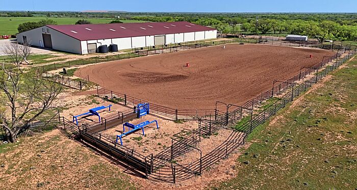 The centerpiece of the property is a spacious, 160x250 covered riding and roping arena with piped return alley and roping boxes, fully equipped kitchen, viewing area, bathrooms, and entertaining space, making it ideal for training, events, or hosting gatherings. Additionally there is an outdoor 150x300 arena with roping boxes and a return alley, Six stall horse barn with equipment apron, and more. Multiple horse or cattle ready pastures and pens provide ample space for boarding, training, or riding, while a picturesque pond adds to the natural beauty and charm of the landscape.