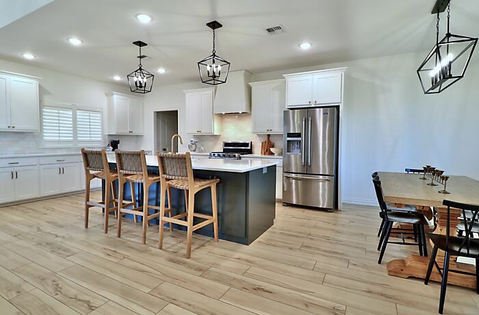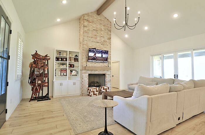 The main residence is a beautifully maintained 2765sqft custom built ranch style home, nestled on rolling acreage with panoramic views of the Texas countryside. This thoughtfully designed 3bedroom, 3bathroom residence features high end finishes, a warm and inviting open concept layout, and timeless charm throughout. Enjoy peaceful mornings with coffee on the covered porch, taking in the serene landscape, and unwind in the evenings by the cozy fireplace. Whether you're relaxing after a day in the arena or entertaining in the spacious kitchen, this home offers comfort, privacy, and natural beauty in every corner.