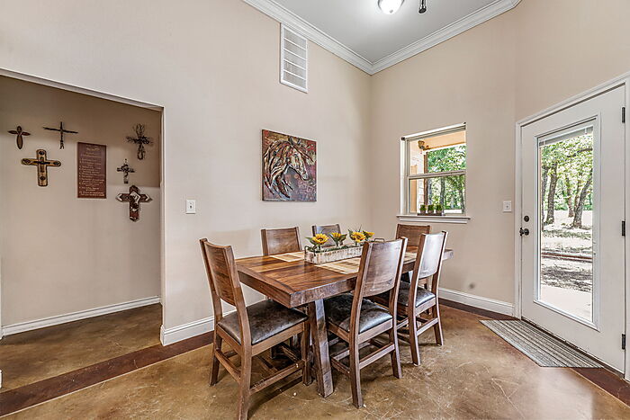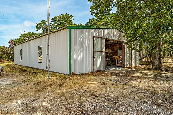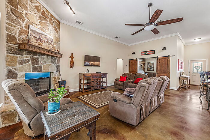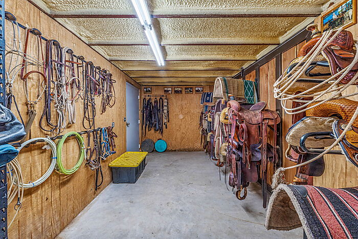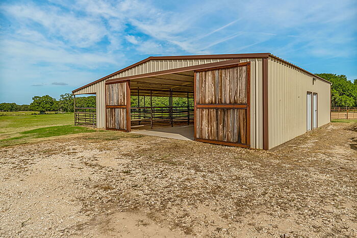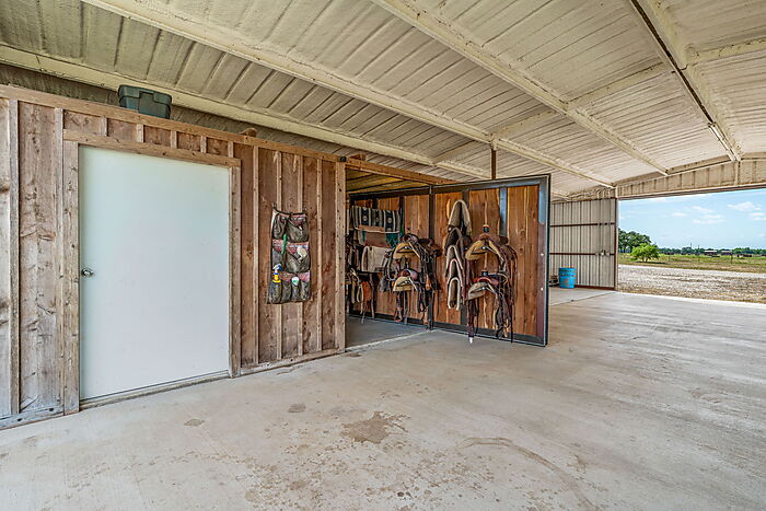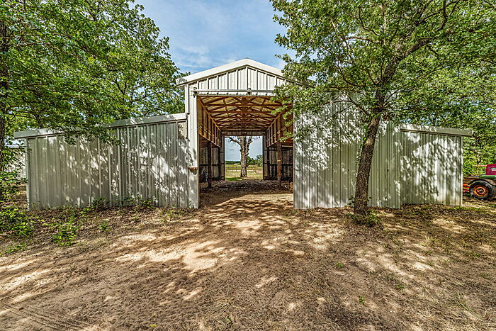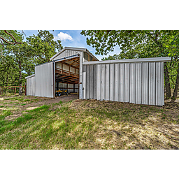 Sitting on nearly 30 acres and designed with horse lovers in mind, you'll find a 4-stall barn (convertible to 8), hay barn, powered shop, and 10 turnouts with sheds and automatic waters. The cutting pen is ready for the cutting enthusiasts, and there's plenty of sandy, flat ground for the team ropers or cowhorse folks to build a full-size arena. The pastures can be connected with the simple opening of a gate, and livestock are easy to move through the alleyway between pens. Enjoy quiet mornings on the wraparound porch or cook up something special in the large kitchen with a walk-in pantry and open living area made for gathering.