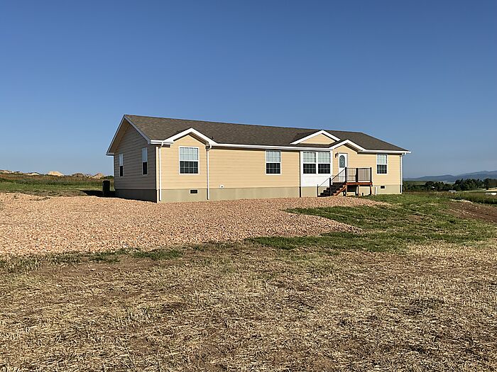 Here is a great opportunity to buy a nice home on 3 acres in the country. Close enough to town but quiet country living with great view of the Black Hills and Terry Peak off of the front deck and the back deck has a nice view of Bear Butte. Near Whitewood and Sturgis with very light covenants, so bring your animals (horses, livestock, chickens, etc.). Open canvas to build a shop or barn the way you would like and has produced beautiful hay on the property. Centrally located to all the activities the Black Hills has to offer making it a perfect location. The home has brand new stainless appliances and is ready for you to move in and call it home. Listed with Jessica Graf of Sturgis Real Estate & Auctions, Inc. Seller is willing to trade in other property, vehicles or equipment. The home has never been lived in. It was used for a 'show' home and office. The home is hooked up to Bear Butte Valley Water Association. Taxes based on the vacant land, they will change now that there is a house there. Docs for permanent foundation should be available soon and we will ad them to the document tab. Buyers and buyers agent to verify all information in this listing.